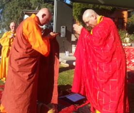 2013 saw some major changes. The Buddhaheart Fellowship became affiliated with CloudWater Zendo, the Zen Centre of Cleveland, Ohio, USA; and Resident Teacher Venerable Sangye Dorje was ordained as a Ch’an (Zen) Priest of the Nien-Fo Ch’an Order by Venerable Shih Ying-Fa, Abbot of CloudWater Zendo. Sangye Dorje was given the Dharma name “Shih Jingang” (meaning Vajra Disciple of Shakyamuni Buddha). Accordingly the Buddhaheart Fellowship changed its emphasis to Nien-Fo Ch’an, which are the unified teachings of Ch’an and Pure Land Buddhism, while still remaining dedicated to the ideals of inclusiveness, and community service.